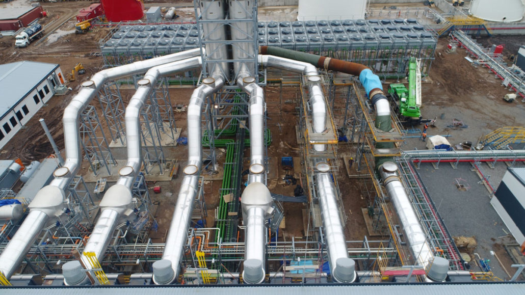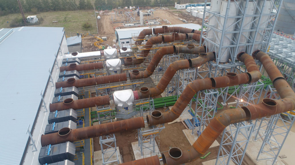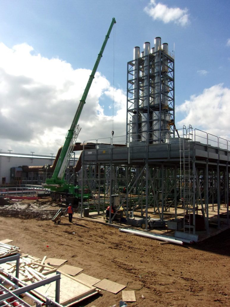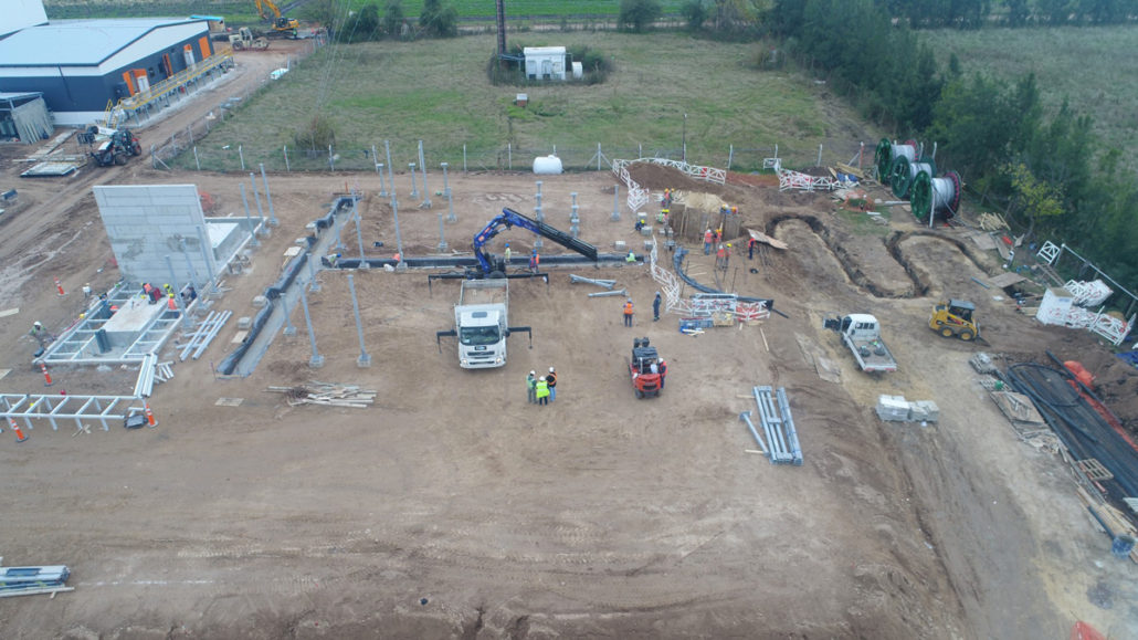 Obra civil sobre cero y montaje electromecánico de una central térmica de 100 MW en Parque Industrial Pilar. Armado de estructuras metálicas, bandejas, soportes, cañerías, instalación eléctrica, tableros, transformadores, cables de control, baja, media y alta tensión. Cañerías de gas, vapor, combustible, ductos, aislación, pintura, y terminaciones.