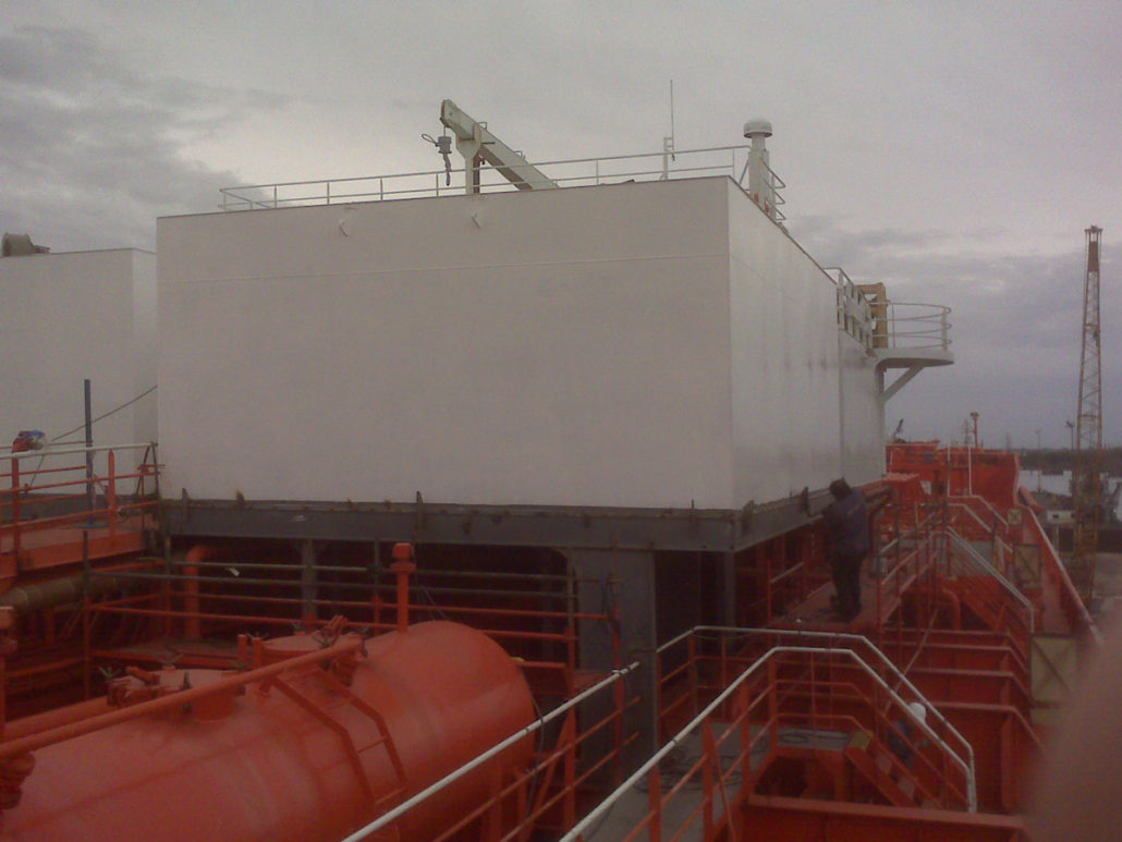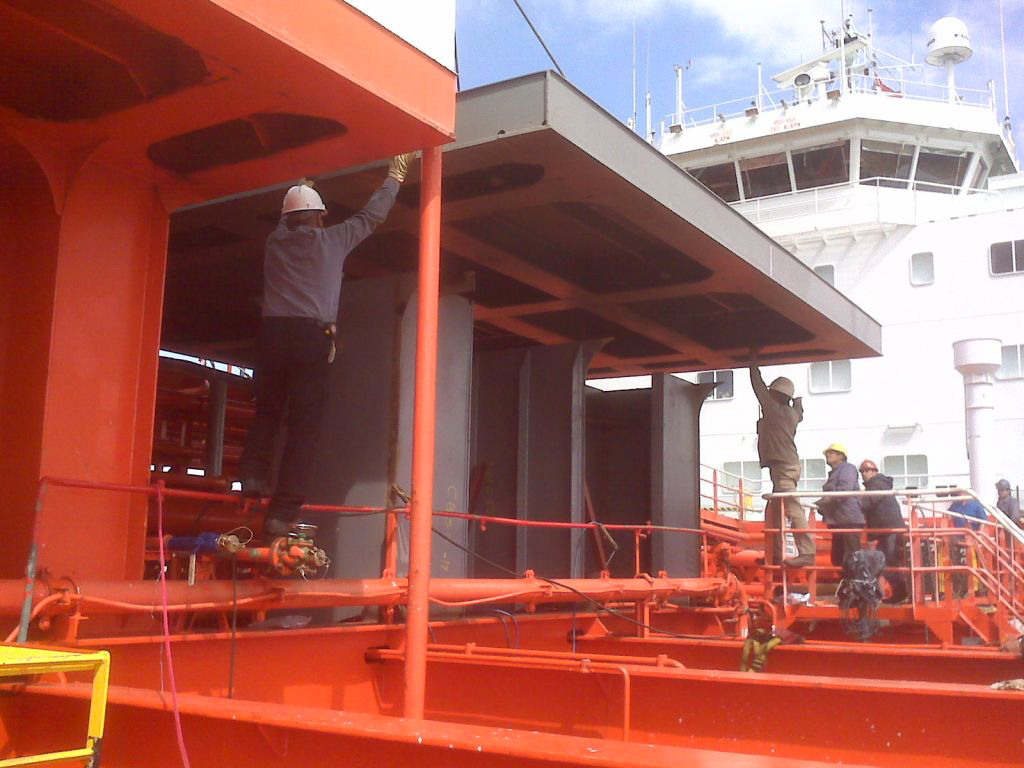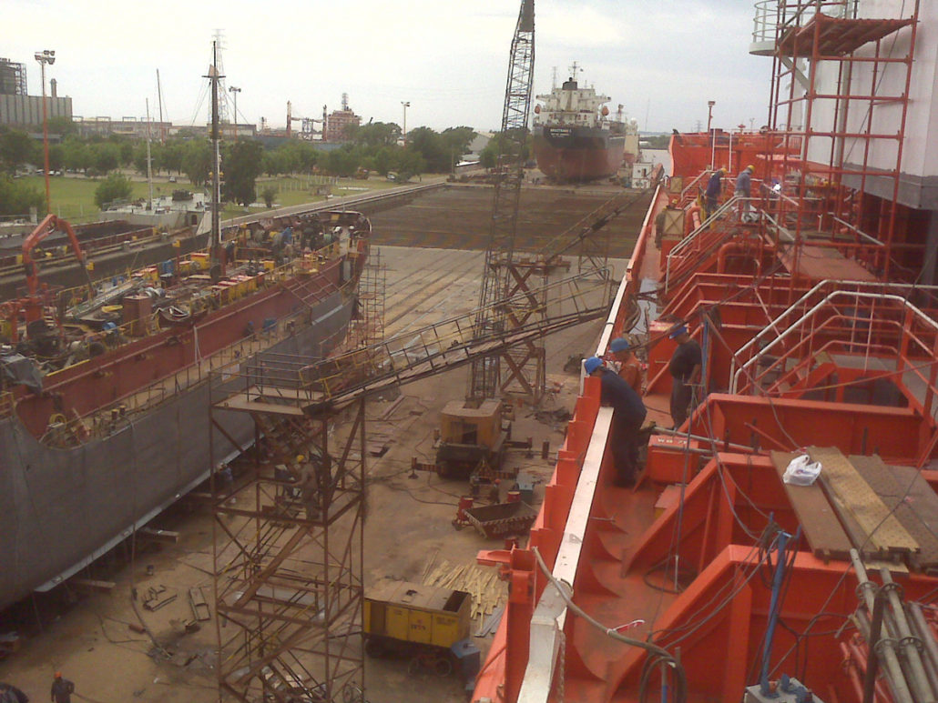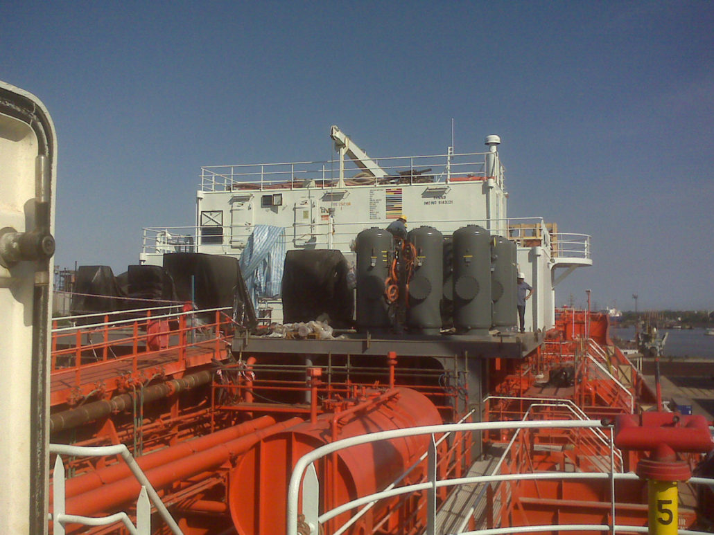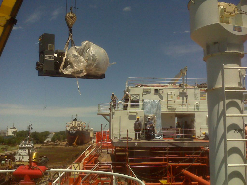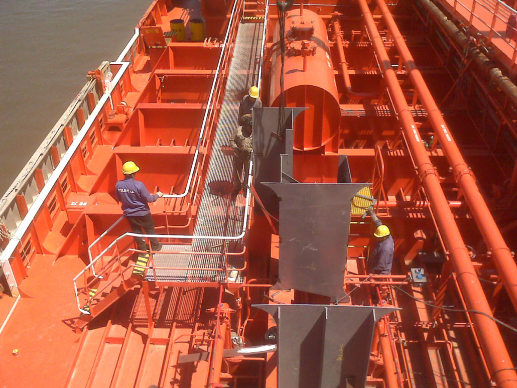 Montaje de planta de gas inerte para limpieza de cañerías en buques químicos. Mecanizados de ejes de timón. Reparación de mecanismos en diversos buques.